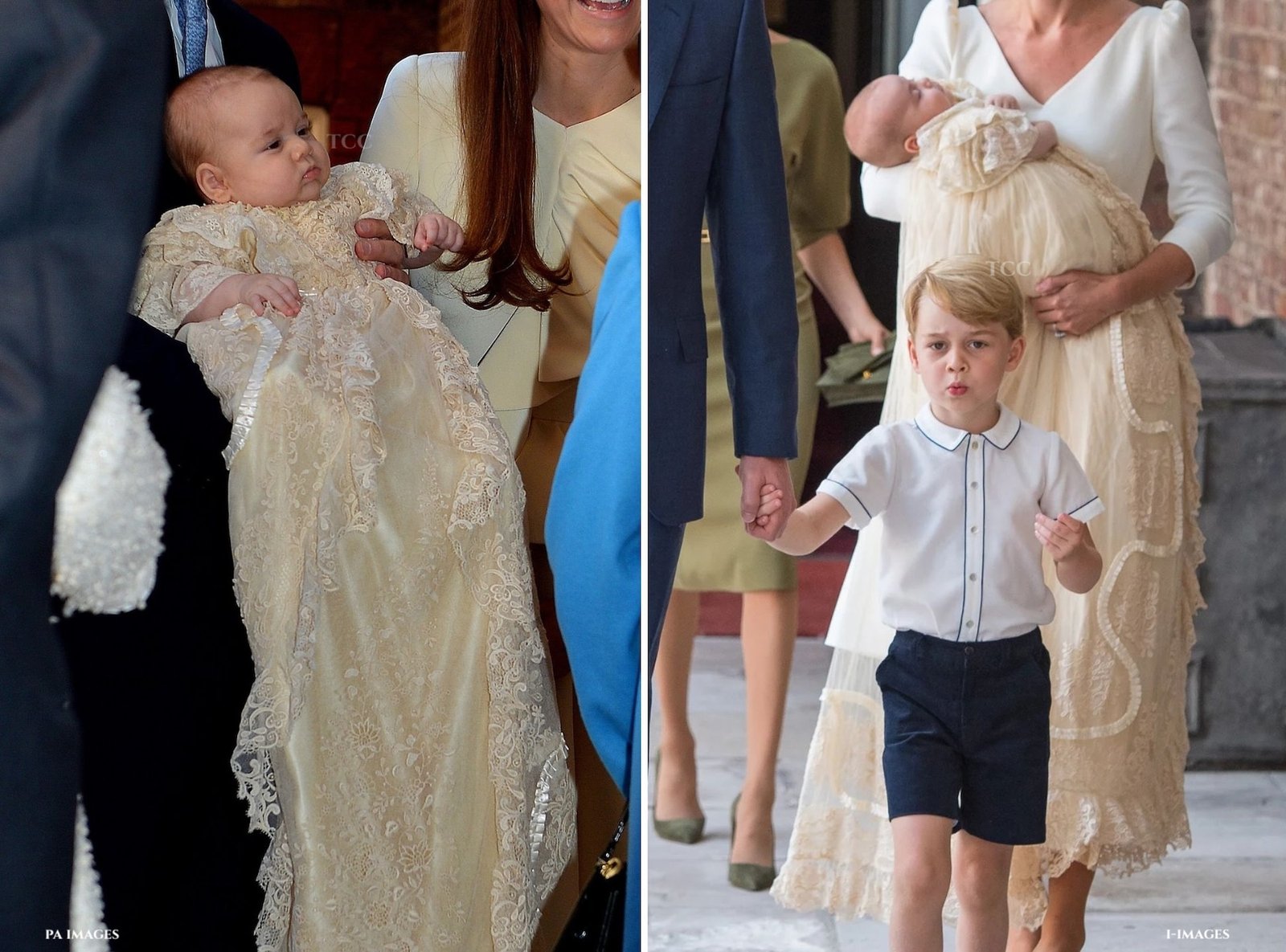 The new gown followed the same design, but the lace overlay appears to be more of a mesh layer (though this could just be because of the better photo quality in recent years!). It was also made slightly larger to accommodate the size of larger modern babies.