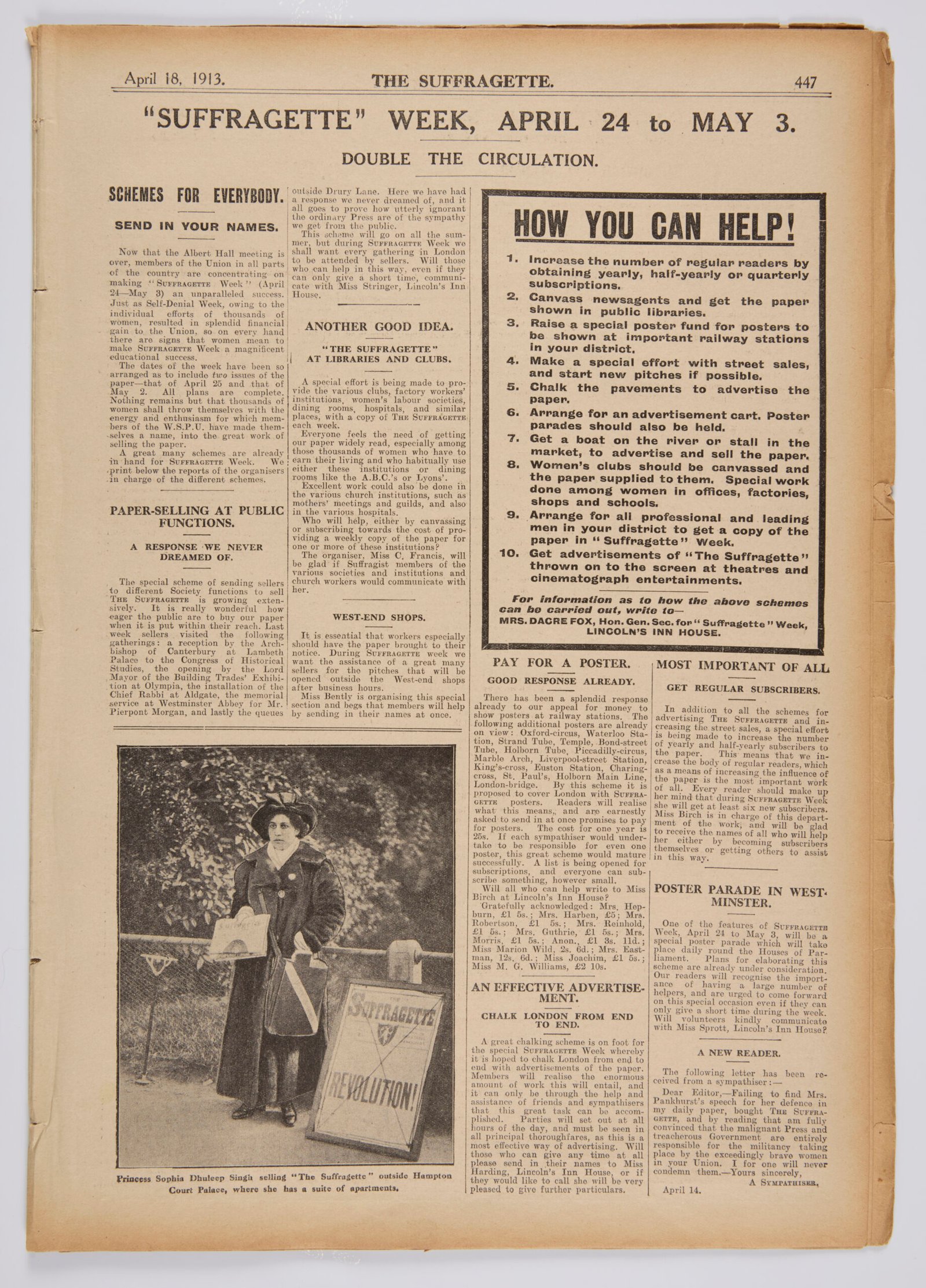 Highlights of the exhibition include an original 1913 copy of The Suffragette newspaper, featuring a scandalous image of Sophia selling copies of the newspaper on the gate of Hampton Court Palace, the grace and favour residence gifted by her godmother, Queen Victoria.