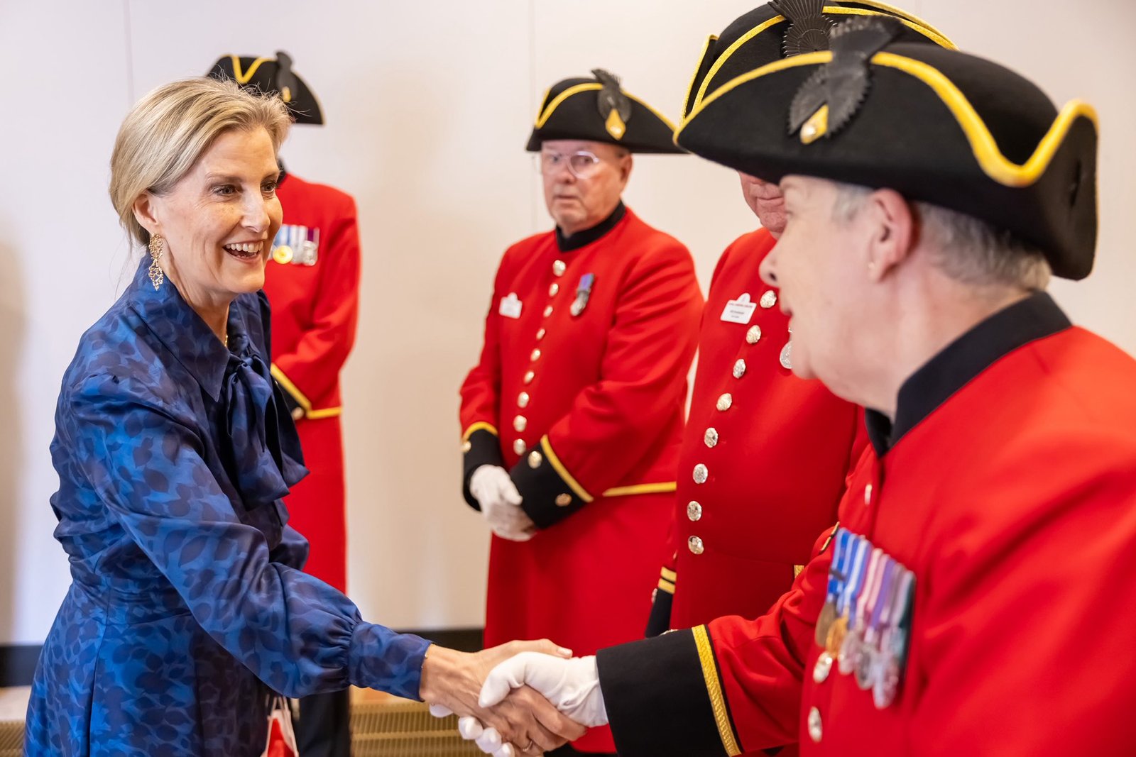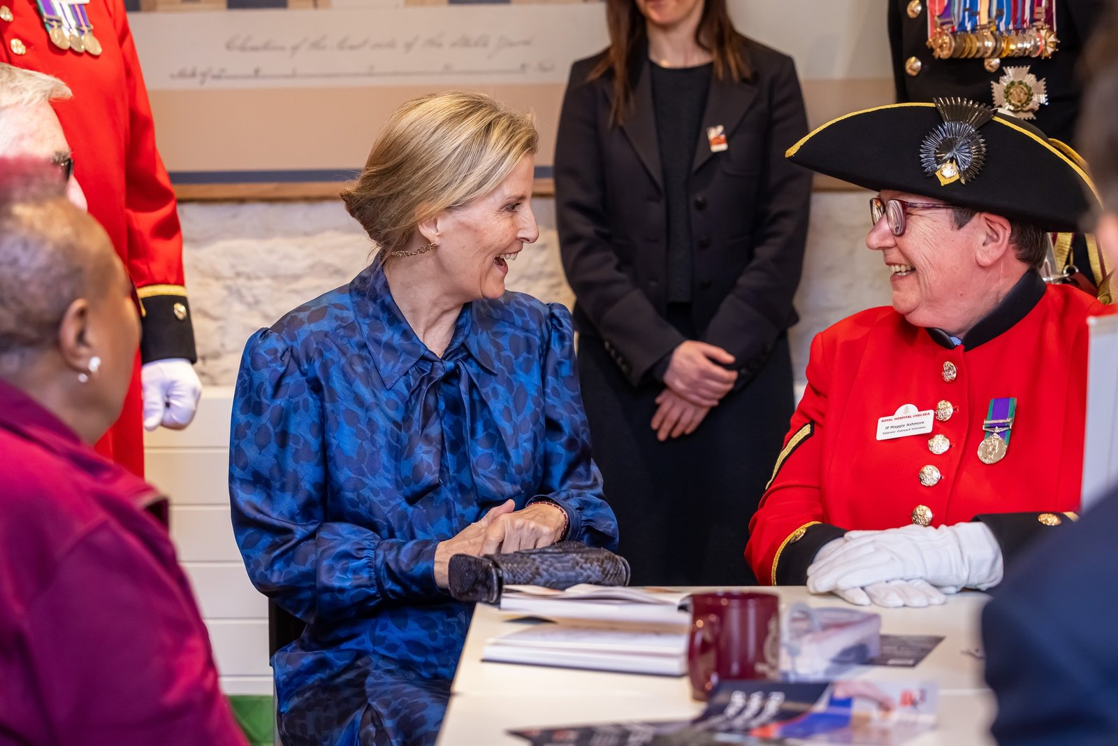 The Duchess of Edinburgh also spent time with a number of Chelsea Pensioners who lead public tours of the Royal Hospital, and spoke with them about their role in sharing the history of the site and supporting its future through fundraising.