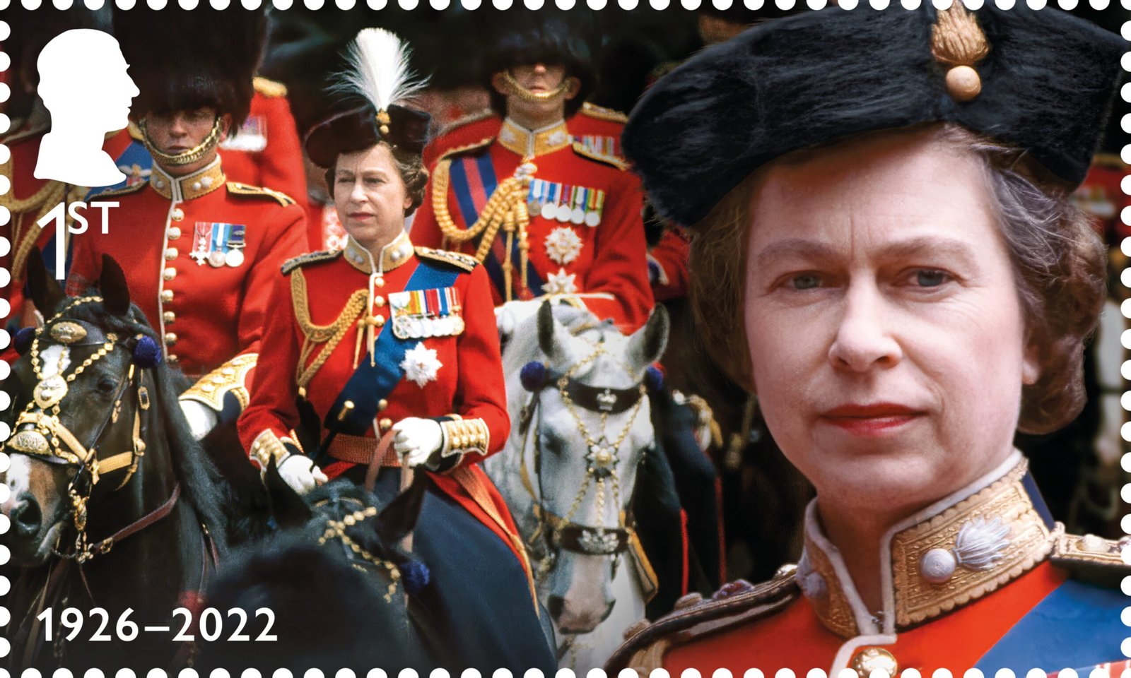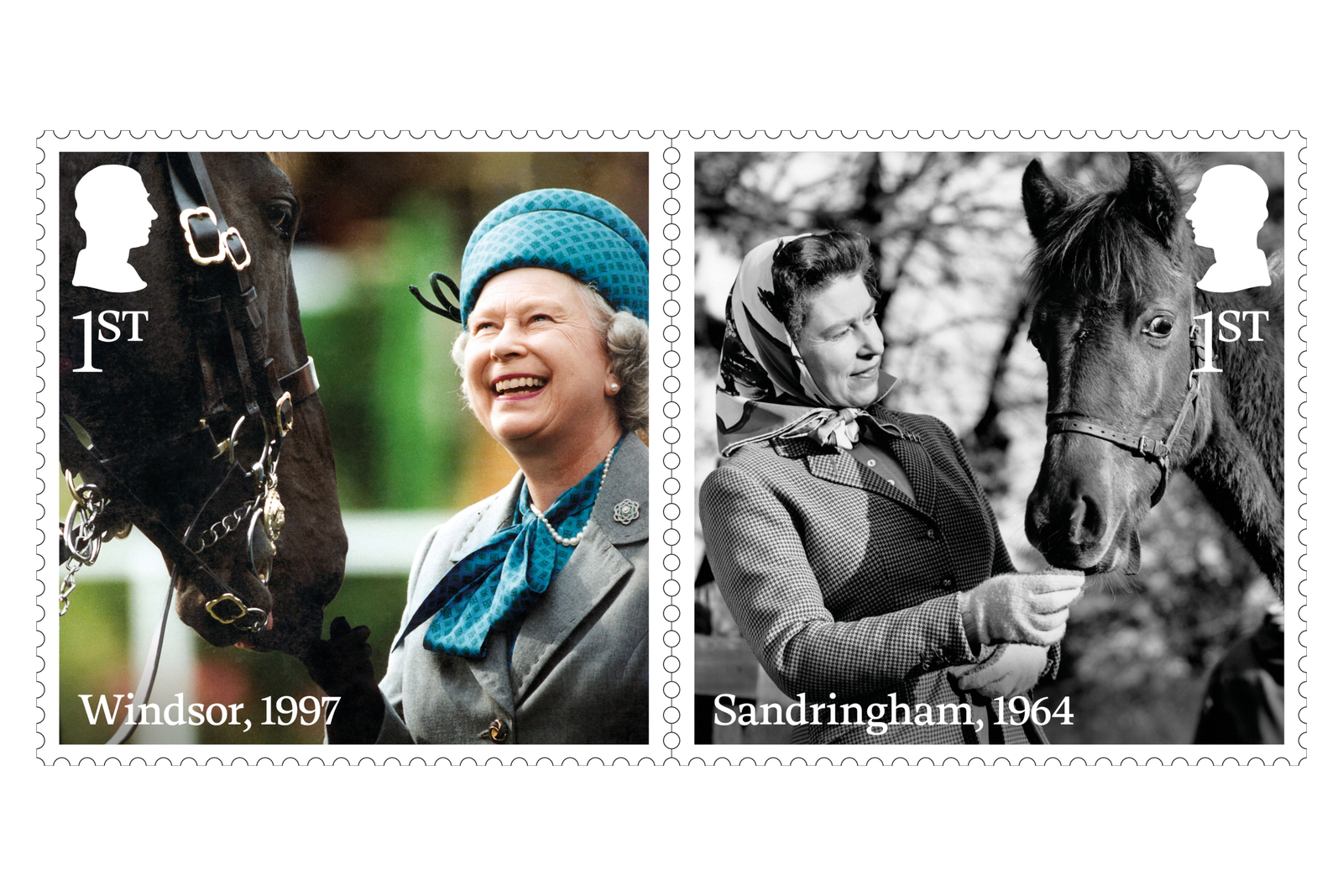 To complement the set, a further miniature sheet has been produced to reflect her lifelong love of horses and dogs. Images include those taken at Balmoral and Sandringham.
