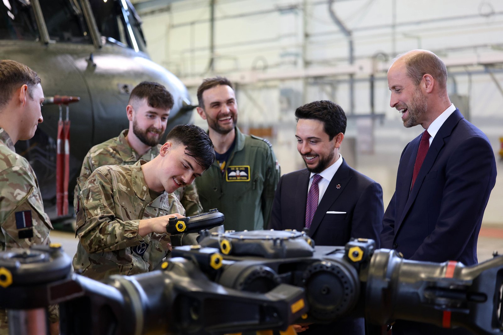 Both Princes helped the technicians with maintenance work, helping tighten a nut on an oil reserve for a rotorhead, which is the large assembly to which a Chinook’s rotor blades are connected. They also received an overview of the work at the base.