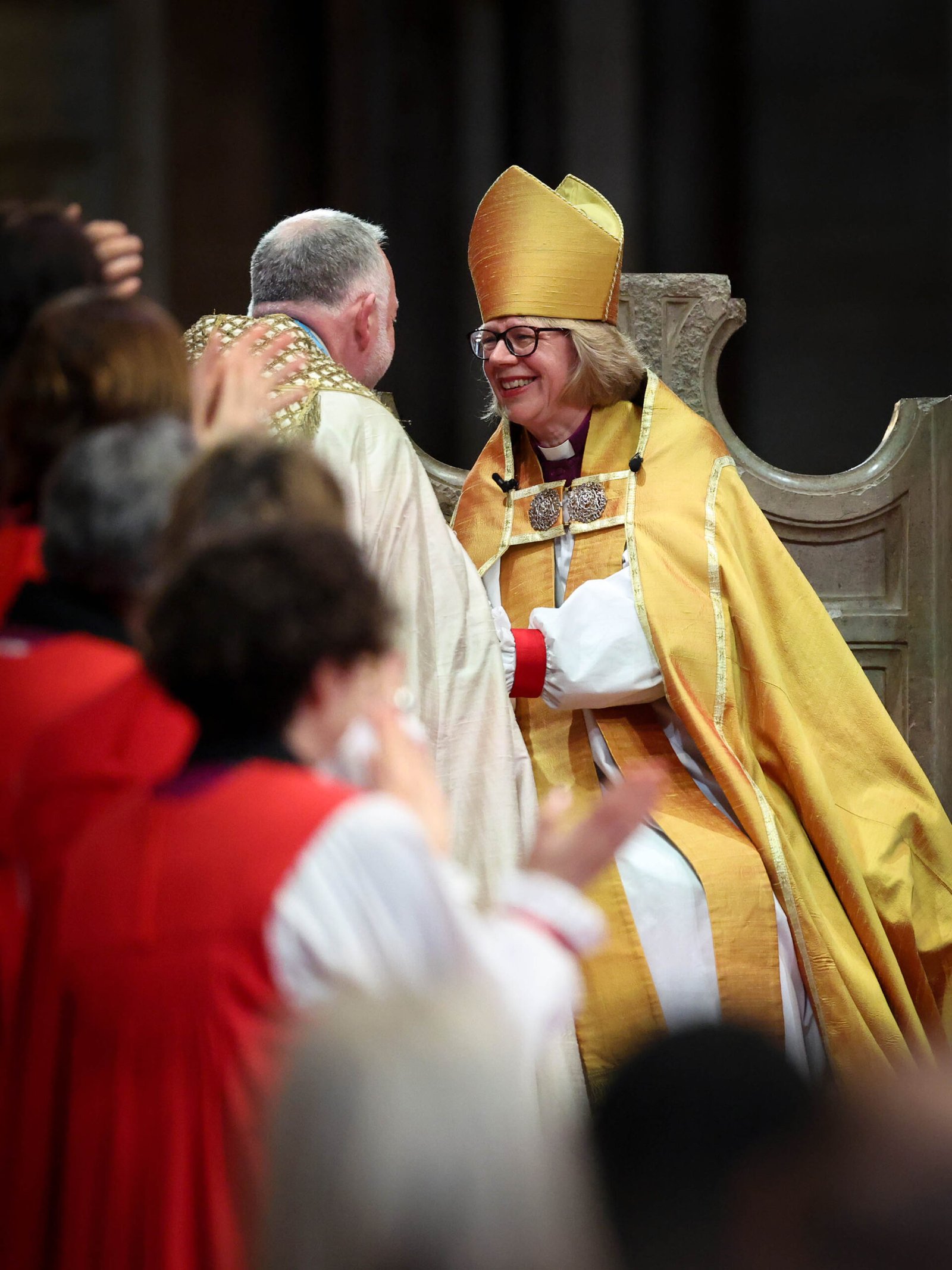 The service at Canterbury Cathedral marked a historic milestone with Archbishop Sarah becoming the first woman to hold the highest office in the Church of England’s 1,400-year history.